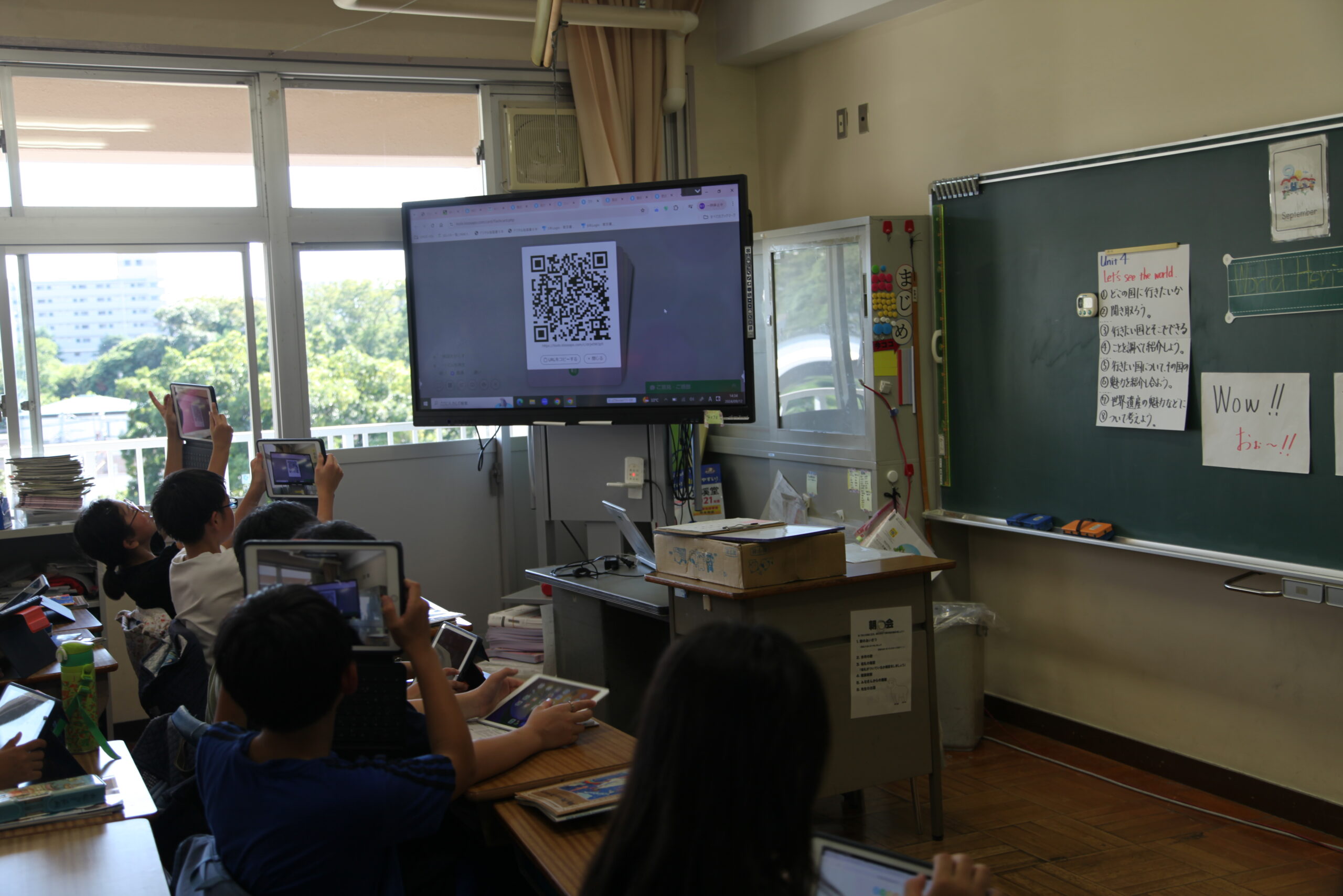 また、授業準備の手間がかからなくなりました。以前はカードを作って、活動するときに児童に配って…ということをしていましたが、今は端末で絵カードを見せながら活動ができます。プリントの準備も6クラスあるので大変でしたが、ロイロノートで一度準備したら、全クラスで使うことができます。児童が見やすい絵カードを作ることができるし、本当にありがたいです。