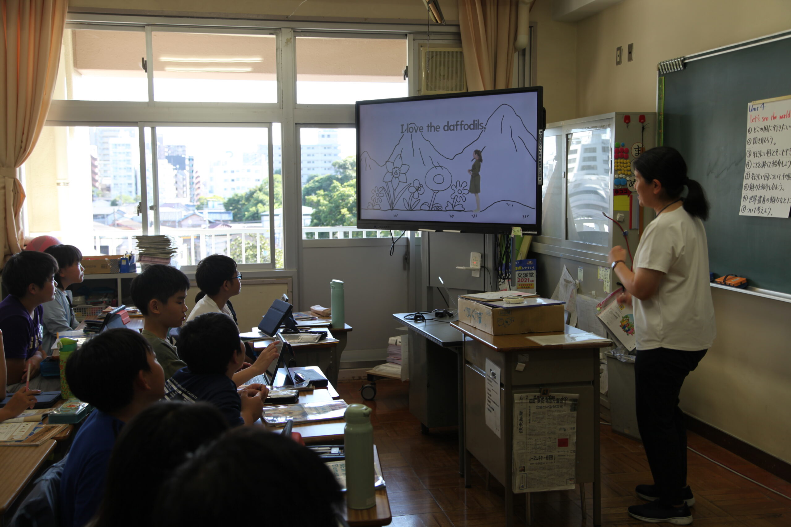 授業の最後に歌った”I Love the Mountains”(キソサポ『Song』より)は4年生のときに初めて見せたんですが、みんな大好きで歌詞を覚えて踊りながら歌っている子もいます。あの歌を歌うと、子どもたちが元気になるんですよ。本当に魔法の歌です。
